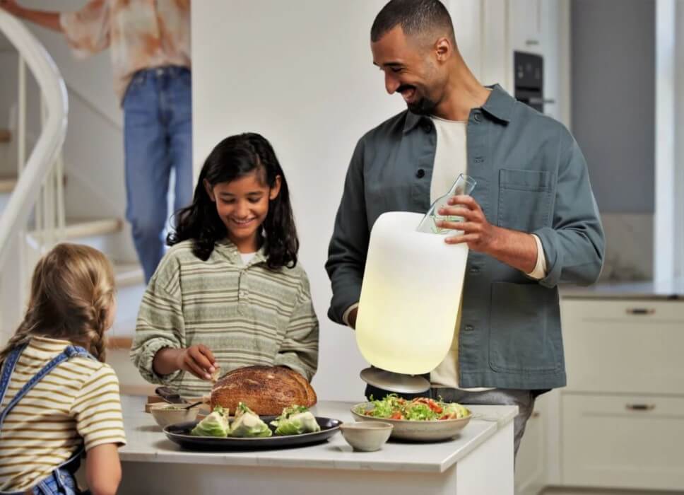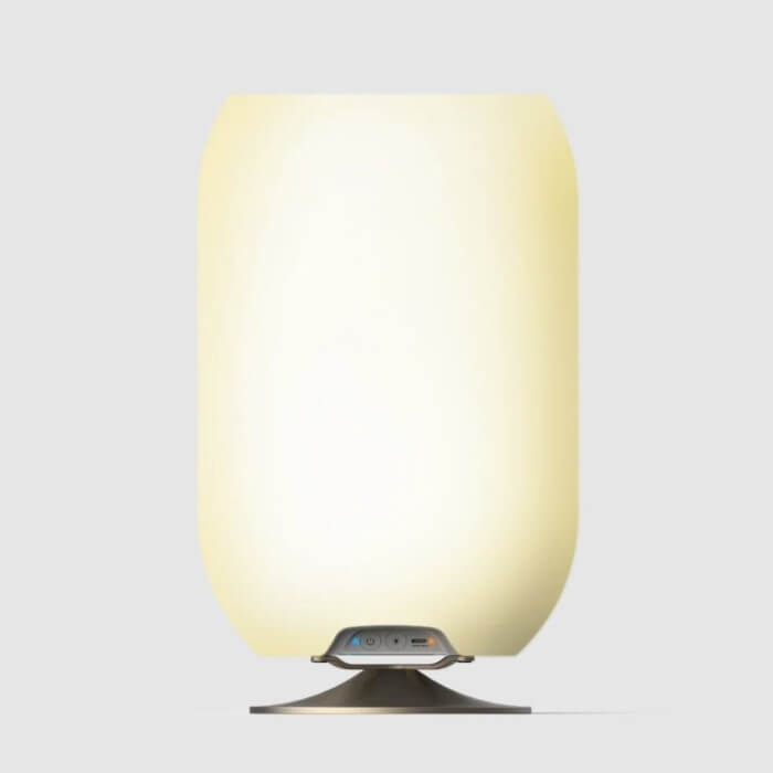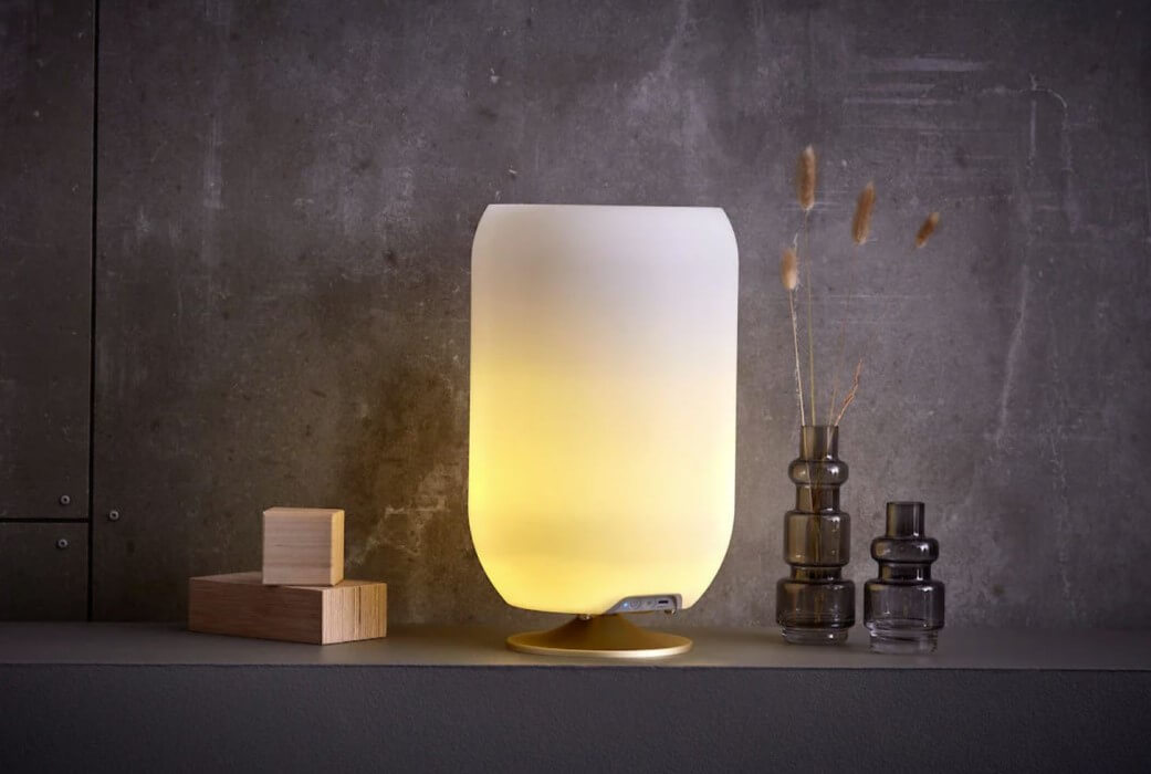 Kooduu Atmos Brass è un altoparlante Bluetooth, una lampada e un portabevande in uno, e ha un aspetto interessante grazie alla sua forma cilindrica minimalista. Il suo design piccolo e pratico è adatto per 2 normali bottiglie di vino ed emette luce calda e regolabile e un suono chiaro grazie al modulo integrato Kooduu Bright Sound Technology™. È stato progettato da Jacob Jensen Design Studio in Danimarca.