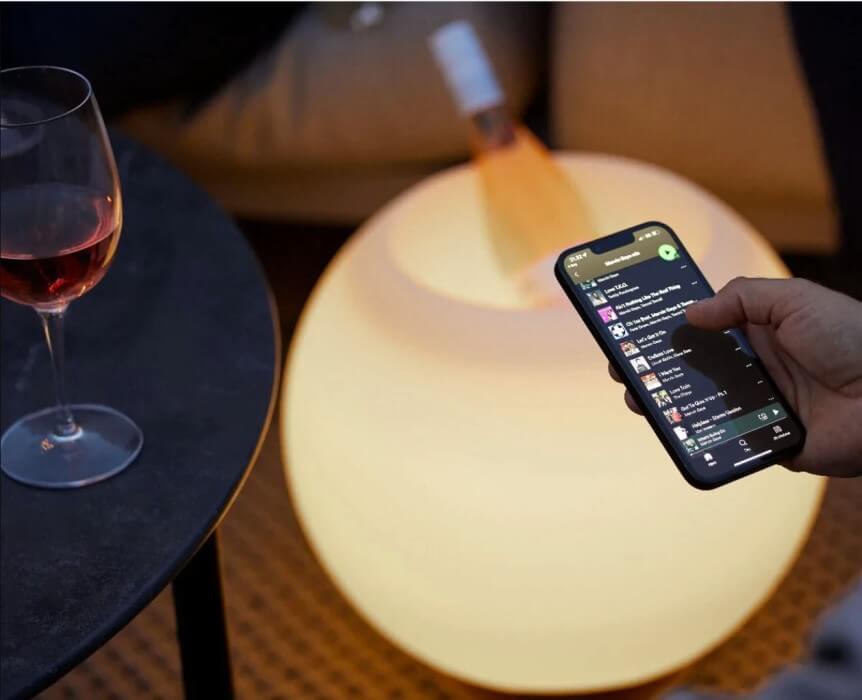 Lampada, altoparlante e portabevande KOODUU Sphere Brass