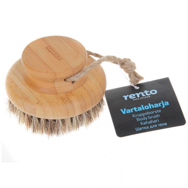 Spazzola tonda con la presa di legno, per il utilizzo in sauna.
