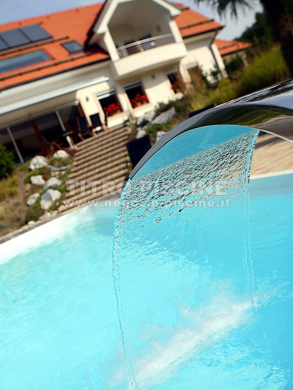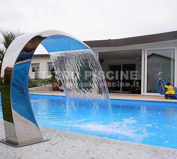 La cascata per piscina è realizzata in acciaio inossidabile di alta qualità AISI 316, lucidato ad alta brillantezza.