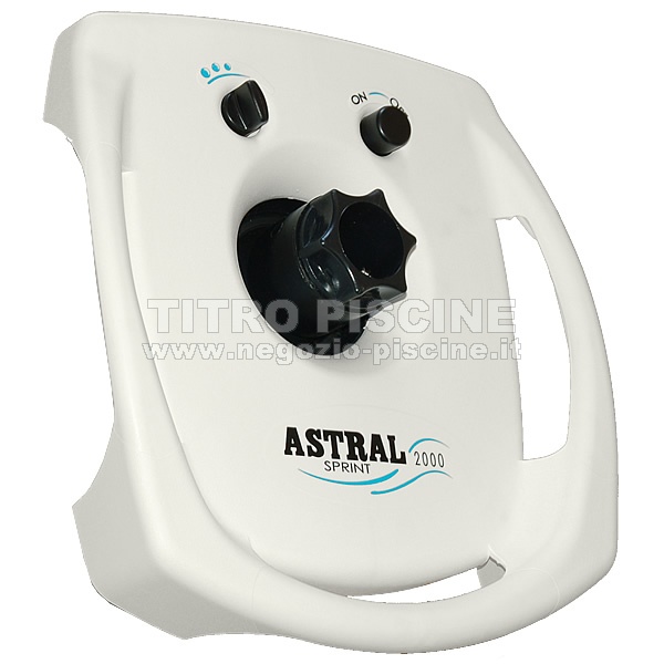 Maschera per il controcorrente Astral Sprint 2000 con bocchetta in materiale noryl, azionamento del controcorrente dalla piscina e regolazione dell'aria, realizzata in plastica bianca con maniglie incorporate.