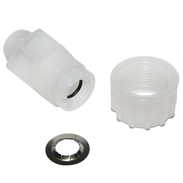 Il supporto per sonda, utile a posizionare le sonde di misurazione nelle tubature della piscina, è realizzato in polietilene con filettature esterna 1/2" e O-ring per sigillare.