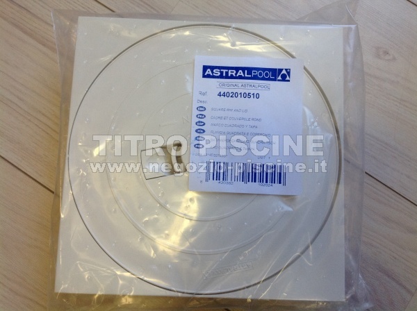 Cornice con coperchio per skimmer Astral Perfect di forma quadrata. Il coperchio è rotondo.