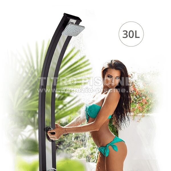 La leggerezza e la forma visibilmente accattivante della doccia solare SPRING assicurano che la doccia trovi facilmente il suo posto in ampi giardini e terrazze. È realizzata in alluminio, combinato con acciaio inossidabile. Il suo grande serbatoio d'acqua con una capacità di 30 litri è riscaldato solo dal sole, quindi la doccia solare SPRING è ecologica al 100%. Si puo' collegare facilmente a qualsiasi tubo dell'acqua. Capacità: 30 l Altezza doccia: 228 cm Pressione dell'acqua consentita: 2 bar In caso di pressione sulla tubazione dell'acqua superiore ai 2 bar, è necessario installare un limitatore di pressione prima della doccia o valvola di riduzione. Garanzia 2 anni.