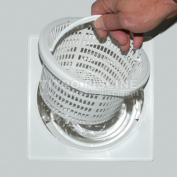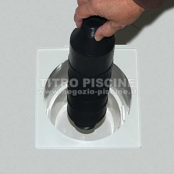Nelle piscine con skimmer che rimangono riempite d'acqua durante l'inverno dovete assolutamente utilizzare i tubolari (per es. Gizzmo) realizzati appositamente per proteggere gli skimmer. Togliete il cestello dallo skimmer e nella filettatura in fondo sistemate il tubolare di protezione.