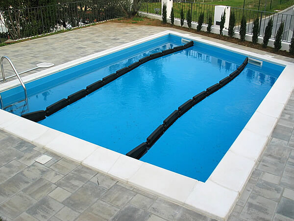 Si consiglia di immergere nell'acqua della piscina i speciali i flottanti galleggianti antigelo protettivi: compensatori di ghiaccio che accumulano la pressione del ghiaccio quando la superficie della piscina è ghiacciata. I galleggianti protettivi sono assolutamente necessari per le piscine in cemento, ma li consigliamo vivamente per tutti gli altri tipi di piscine, poiché evitano danni alle piscine dovuti al ghiaccio. Collegare insieme i galleggianti protettivi in una catena tesa lungo la lunghezza della piscina. Si consiglia di installare almeno due file di i flottanti galleggianti antigelo nella piscina nel caso di piscine più larghe (più di 4 m).