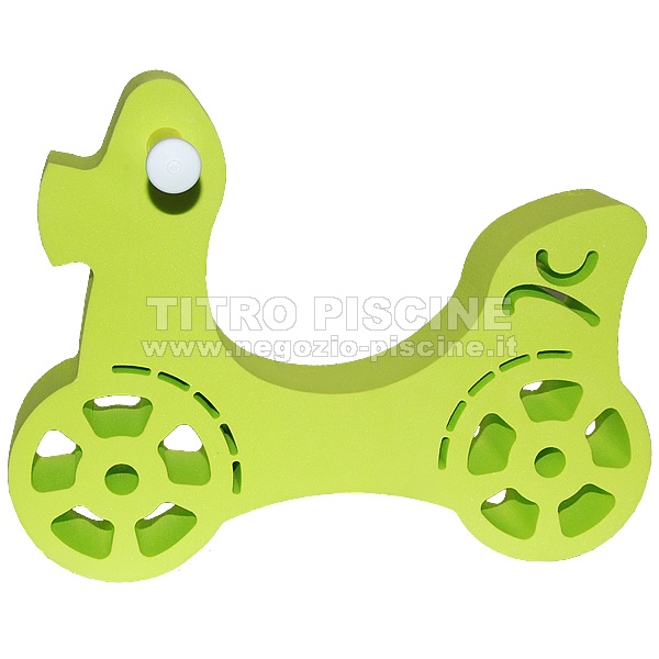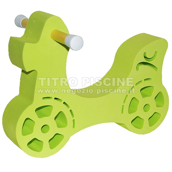 Scooter galleggiante in polietilene espanso per bambini, per il gioco e il diverimento in acqua. Il bambino incomincia ad abituarsi all'acqua in modo divertente. Non assorbe l'acqua, è provvisto di maniglie per una facile presa.