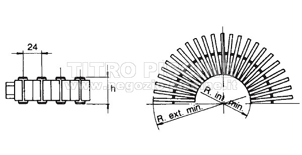 La griglia per le curvature viene realizzata dai singoli elementi che si congiungono in un punto solo al centro del singolo elemento. Per questo le griglie di questo tipo si possono utilizzare per canali di sfioro con curvature di diverso raggio.