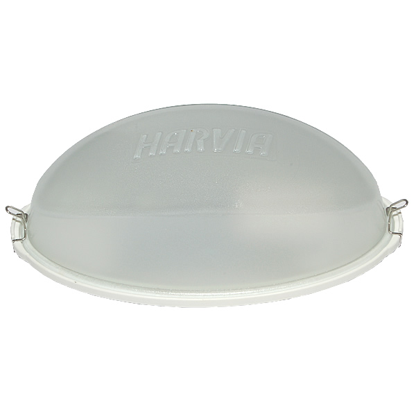 Lampada in vetro ovale per saune secche, resistente alla temperatura massima di 125°C.