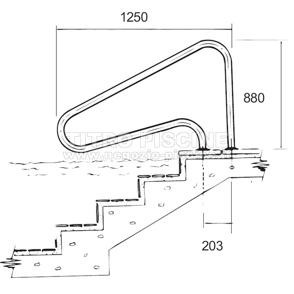 Lunghezza della maniglia: 1250 mm. Altezza: 880 mm. Diametro del tubo in inox: fi 43.