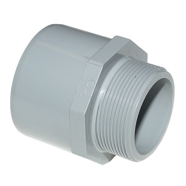 Riduttore in PVC, PN 16, con attacco a incollaggio interno ed esterno e filettatura withworth esterna, realizzato in PVC-C resistente alle alte temperature, PN 16, con attacchi a incollaggio.