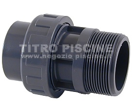 Bocchettone speciale in PVC con presa d'incollaggio interna, filettatura esterna e guarnizione speciale O-ring. Permette una sigillatura semplice senza dover utilizzare silicone, teflon etc. Viene utilizzata nei punti in cui preferite avere la possibilità di smontare parte dell'impianto se necessario, avvitandolo poi nuovamente nella filettatura. Risulta molto adatta per le valvole a 6 vie, pompe, raccordi con filettatura interna etc.