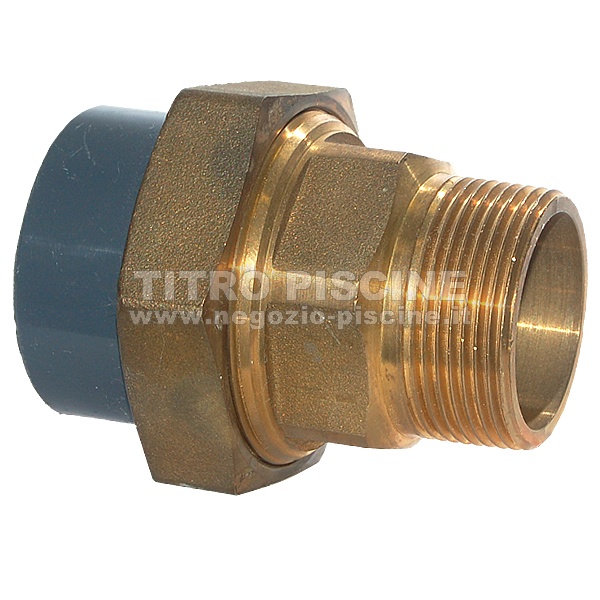Bocchettone speciale in metallo con presa d'incollaggio interna in PVC e filettatura esterna in metallo. Realizzata in ottone galvanizzato. Permette la giuntura tra una parte in metallo e un' installazione in PVC. È adatta e anche molto utile per l'aggancio degli scambiatori di calore in metallo.