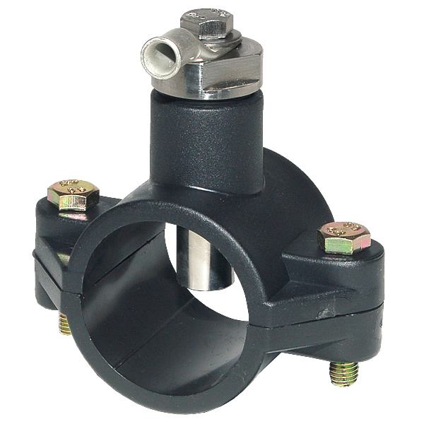 Il fissaggio è semplice e non prevede l’utilizzo della colla. Sul tubo in PVC (o su altro tubo dello stesso diametro) è necessario creare l’apertura adatta nella quale viene inserita la sonda e successivamente il collare per tubi, che viene fissato con le apposite viti. Per sigillare il tubo in PVC e il collare utilizziamo l’O-ring. La sonda dispone di attacco per il cavo di messa a terra che deve avere la sezione adeguata (almeno 4 mm2 o più).
