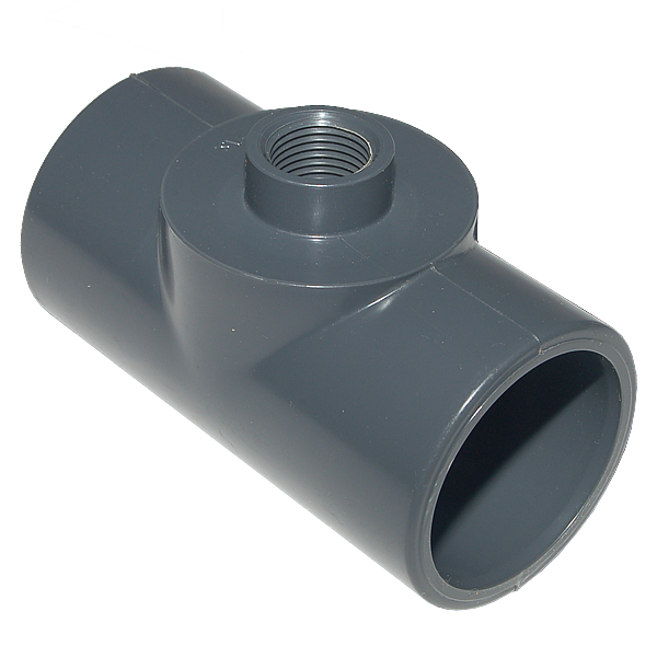 Pezzo a T in PVC, PN 16, con due attacchi a incollaggio standard e sopra filettatura interna, adatto a tappi con filettatura, supporti per sonde, iniettori per il dosaggio dei regolatori dell’acqua della piscina etc.
