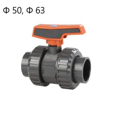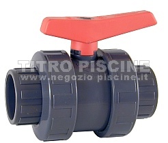 Valvola standard in PVC con prese interne per l'incollaggio su entrambe le parti. La valvola è di alta qualità in quanto realizzato in forma particolare a sfera e guarnizioni resistenti, il che garantisce una sigillatura eccellente per molti anni. La maniglia in colore rosso è realizzata in modo da maneggiarla facilmente.