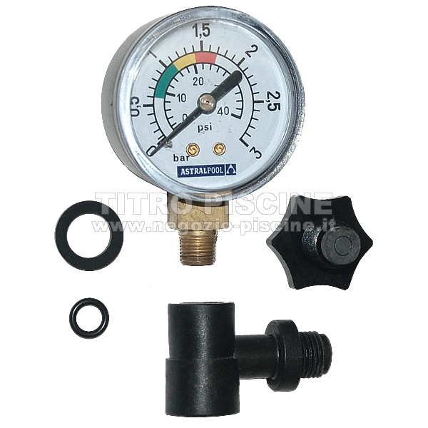 Il completo per filtri ASTRAL comprende: manometro, pezzo a T del manometro con valvola di sfiato e guarnizioni necessarie.