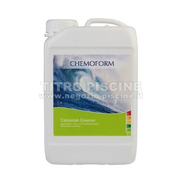 Calzestab-eisenex trattiene tutti gli ioni minerali sciolti. La quantità di prodotto viene regolata in base alla presenza di sali minerali nell'acqua. Con un aumento del contenuto di minerali nell'acqua bisogna anche aumentare la quantità di dosaggio. A volte dopo il dosaggio l'acqua può risultare torbida. Questo può essere risolto aggiungendo ancora un po' di calzestab-eisenex e la torbidità sparisce nell'arco di un giorno.