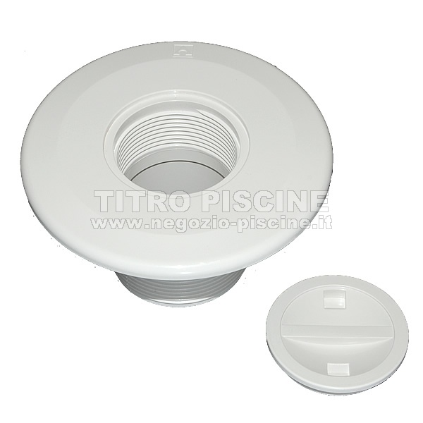 Il raccordo di aspirazione base con tappo ha sulla parte finale l'attacco per l'incollaggio interno fi 50 e la filettatura esterna 2". Realizzata in materiale ABS. Può essere installato all'interno del passante a muro (con filettatura interna 2").