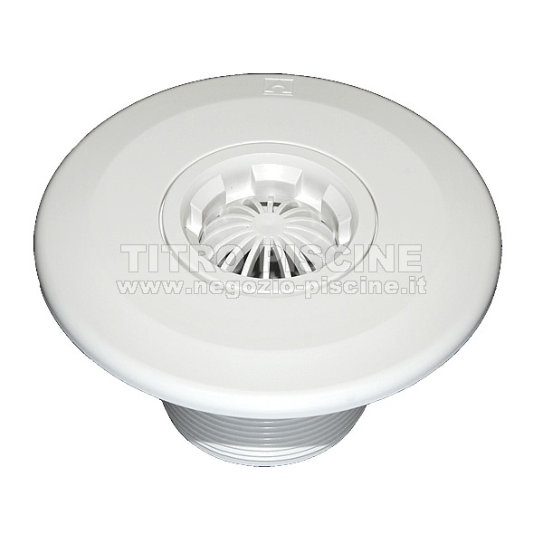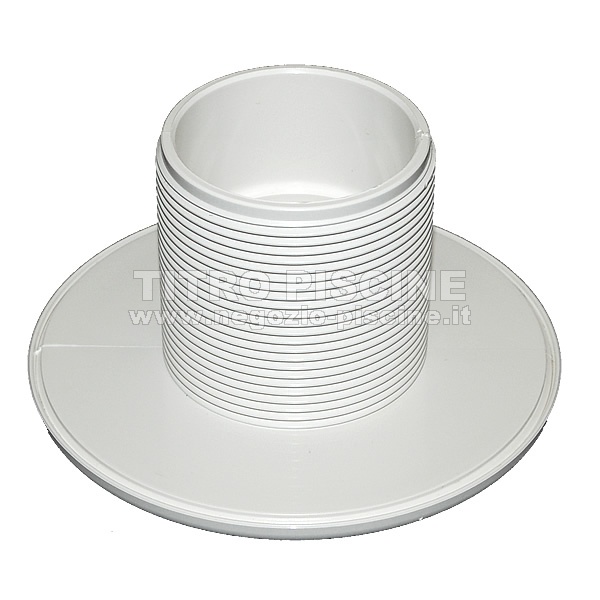 Il raccordo di aspirazione base con retina ha sulla parte finale l'attacco per incollaggio interno fi 50 e filettatura esterna  2". Realizzata in materiale ABS. Può essere installato all'interno del passante a muro (con filettatura interna 2").