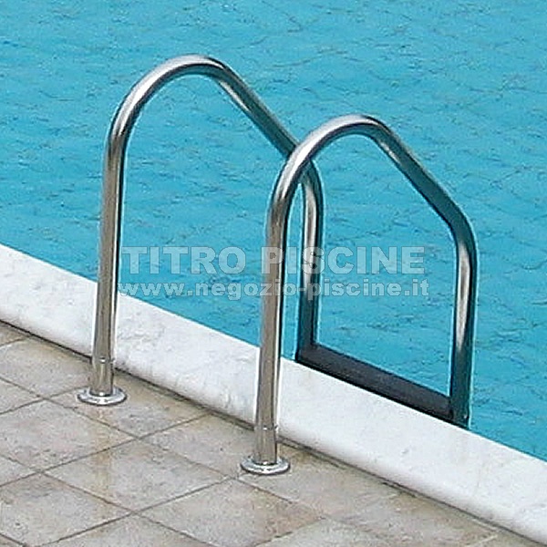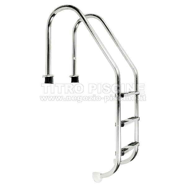 Scaletta per piscina in Inox LIKE di larghezza standard per l'entrata e l'uscita dall'acqua realizzata con tubo del diametro di 43 mm e gradini in inox, qualità AISI 304.