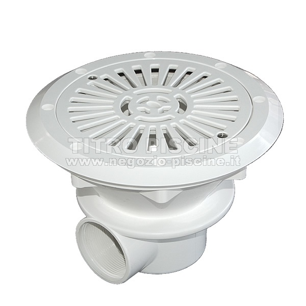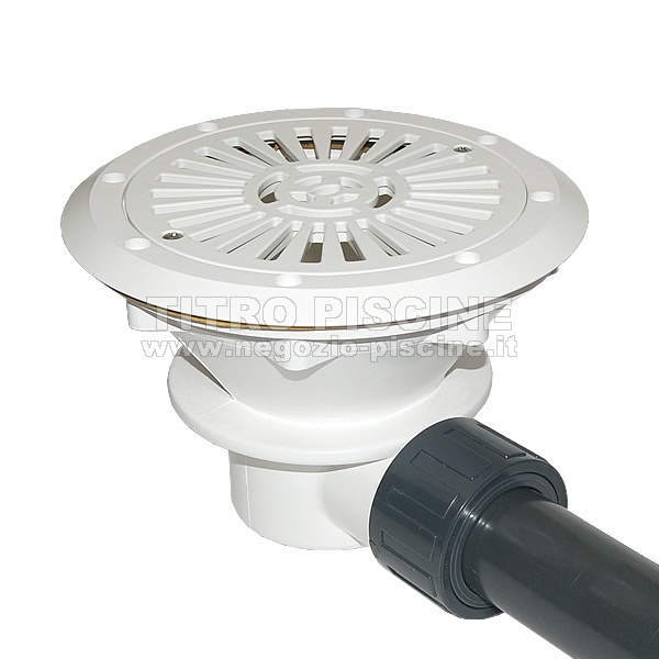 Viene installato in linea con il fondo della piscina prima della posa della membrana. La flangia e la griglia risulteranno leggermente sopra il livello del fondo della piscina.