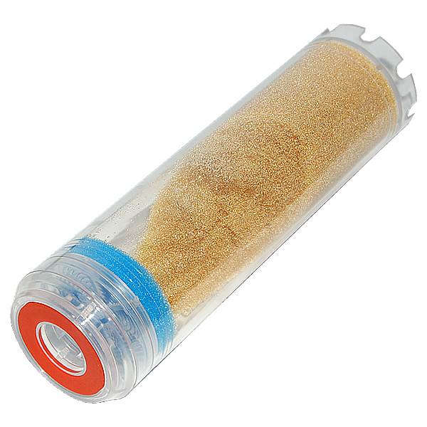Cartuccia per addolcire l’acqua contenente resina cationica, utile a eliminare il calcare dall’acqua.