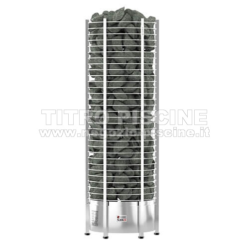 La stufa è realizzata in forma di torre e ha tutt’intorno le pietre a vista. Questo permette di poter versare l’acqua sulle pietre sia da sopra che anche di lato, e quindi ottenere ulteriore umidità. Versando dall’alto l’acqua si sprigionerà un’umidità intensa, mentre versando l’acqua sulla metà inferiore delle pietre l’umidità sarà meno intensa.