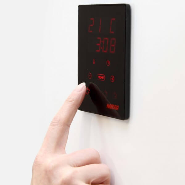 L'unità di controllo con touch screen elegante e piccola è facile da installare dove si vuole: nella sauna, nel soggiorno, ...