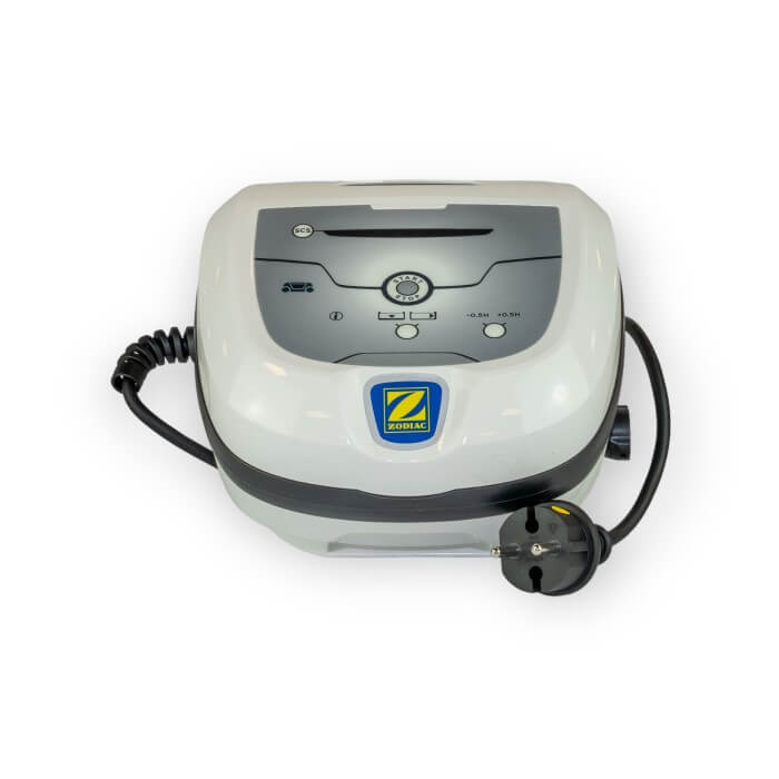 L’unità di controllo è progettata per consentire il collegamento al carrello di trasporto del robot pulitore per piscine CyclonX.